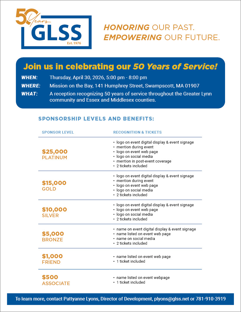 Event tickets are $100 each and can be paid for by mailing a check along with the Sponsorship & Ticket form to Greater Lynn Senior Services or online by clicking here.